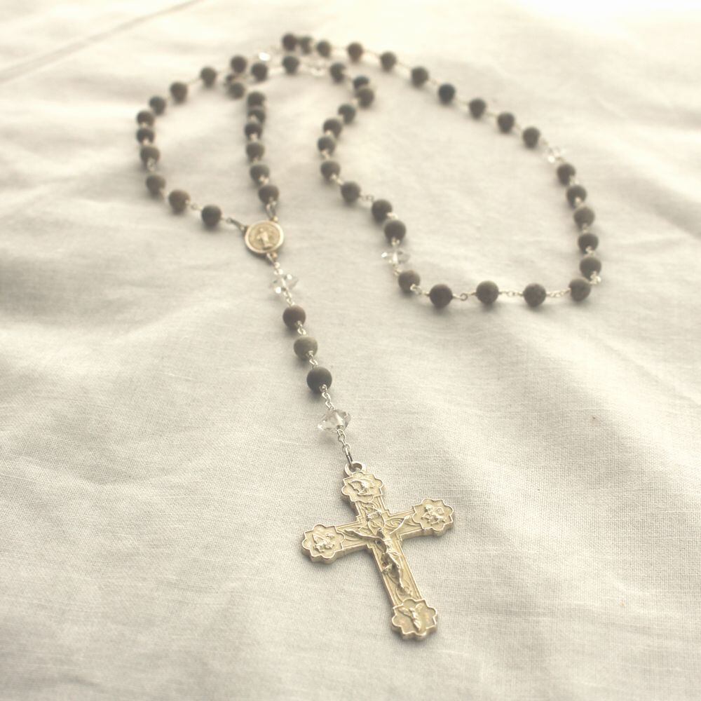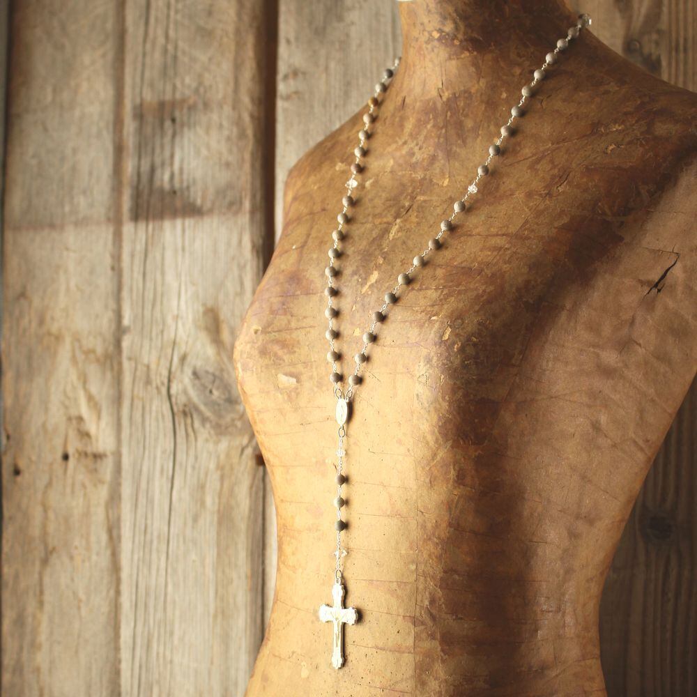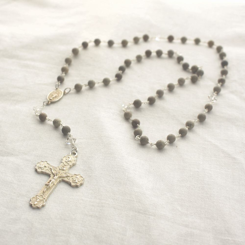 ゲルマニウムという珍しいグレーの石を使用したロザリオです。