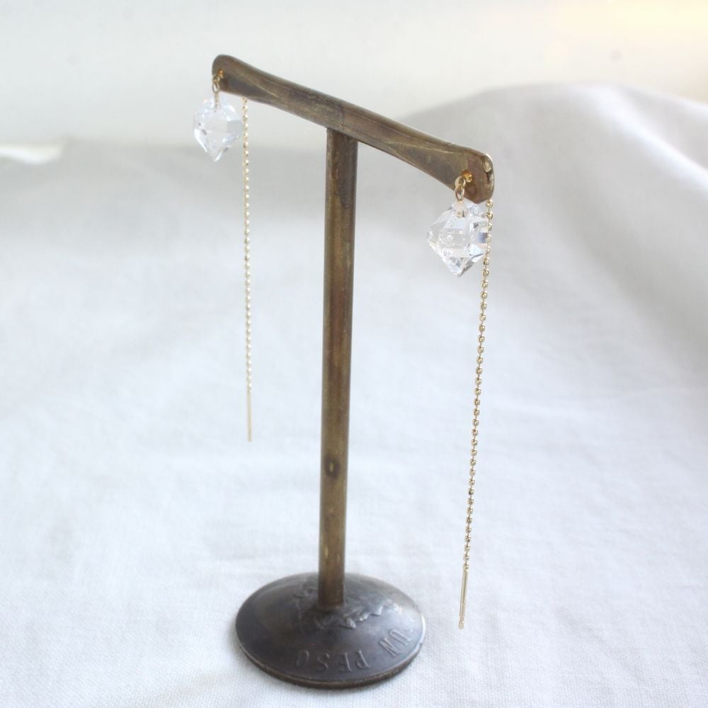 透明感あるハーキマーダイヤモンドが先端で揺れるアメリカンタイプのチェーンピアスです。
